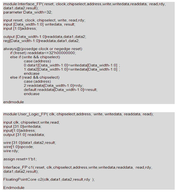 2. Now copy Interfece_FP.v and User_Logic_FP.v into your project. Save and run.
